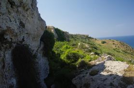 Vysoko nad červenou pláží Ramla l-Hamra, kterou mnozí považují za nejhezčí na ostrově, se nachází Calypsina jeskyně. Někteří lidé tvrdí, že se jedná o jeskyni, která se objevila v Homérově eposu Odysea. Na pláži se nacházejí pozůstatky rytířské pevnosti z poloviny 18. století, která měla chránit před nepřátelskými invazemi.